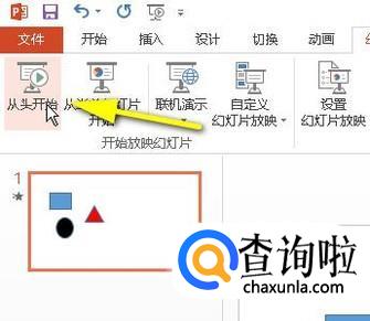 在打开的内容中,再点击:从头开始。打开了放映界面
