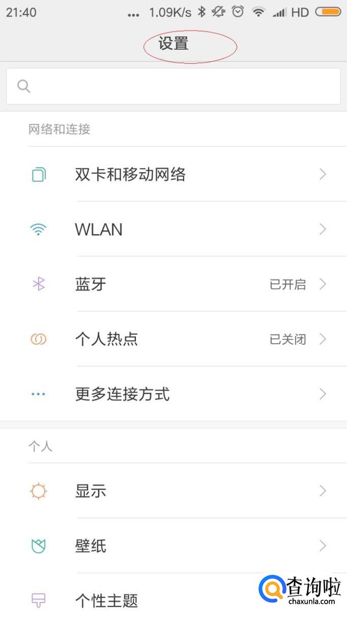 启动红米手机系统,如图所示。唤出用户主界面,点击"设置"图标。