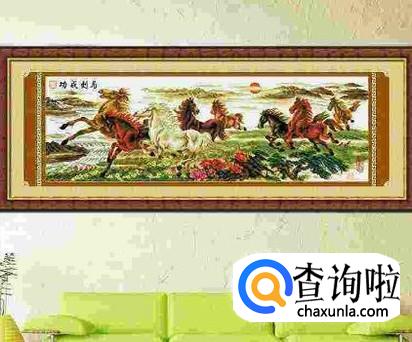 万马奔腾的十字锈适合挂在中年人的客厅中,意谓着事业有成、生意兴旺,也激励着自己努力、奋进,体现出主人的进取精神。