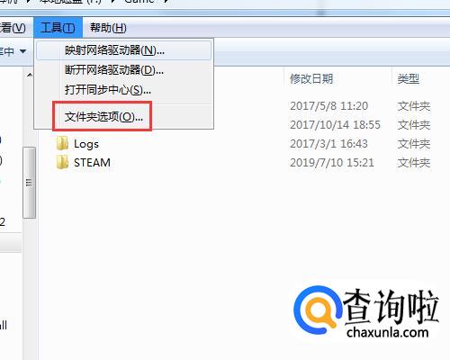 如果要恢复,在上方【工具】栏选择【文件夹选项】;