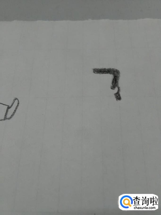在干部右侧,画一个双线的7,并用黑笔涂成黑色,表示另一个人的头发。
