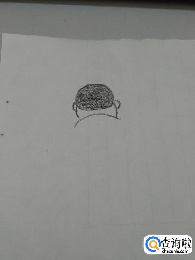 先用笔在纸上画一个馒头的形状,并且涂成黑色,表示人的头发。