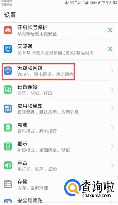 弹出的界面,我们点击无线和网络;
