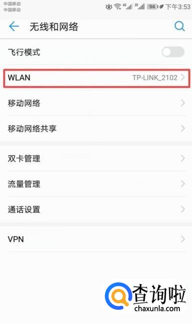 然后我们点击WLAN;