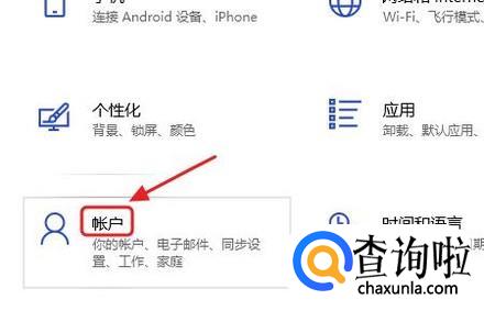 接着就会弹出“Windows设置”对话框,我们依次点击其中的“账户”-“登录选项”;