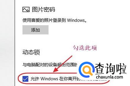 最后一部就是将动态锁打开,不过事先需要手机和该电脑的蓝牙进行配对,以后一旦手机蓝牙超出一定范围,电脑就会自动锁定;