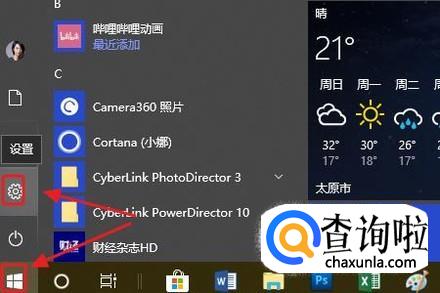 我们首先点击电脑左下角的“开始”菜单,然后在弹出的窗口最左侧点击设置图标,如图所示...