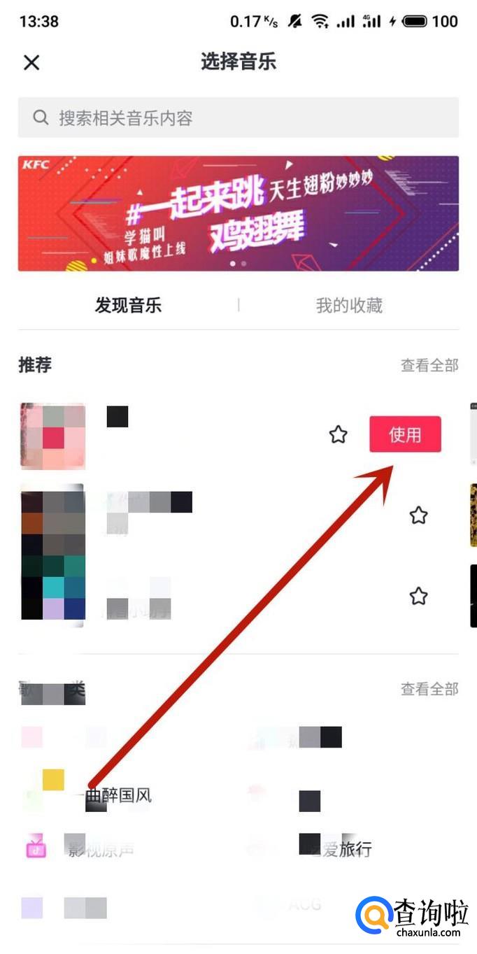 进入之后,找到自己喜欢的音乐,点击“使用”即可添加上音乐,如图所示。