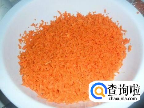 将胡萝卜切成丁然后剁成沫,西芹也切成沫,西芹比容易熟就不用烫熟了,葱切成葱花,姜切成姜末备用