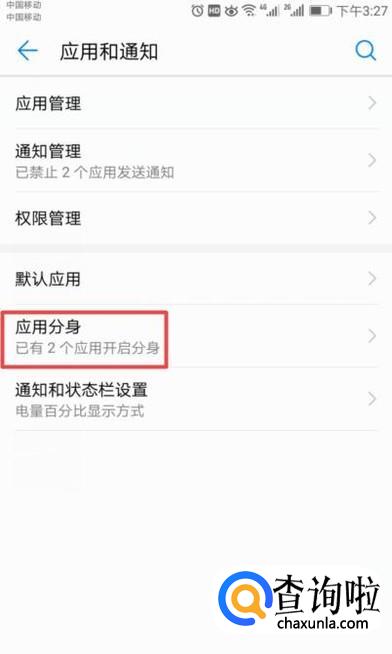 弹出的界面,我们将微信的应用分身开关向右滑动进行打开,这样就会出现两个微信了,我们就可以同时登陆两个微信号了。