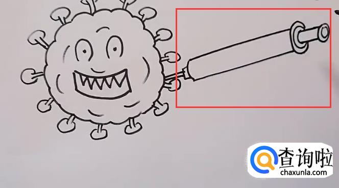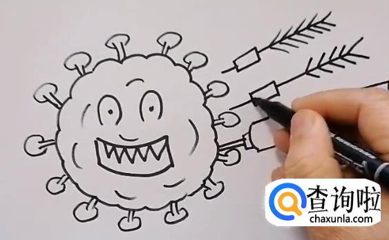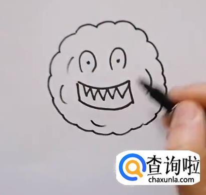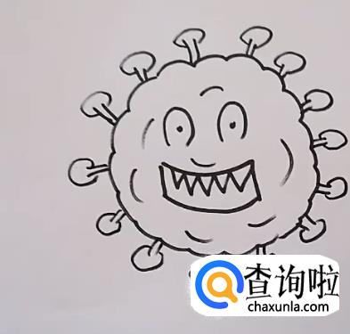 用波浪线画一个病毒的头,然后脸上加上一些小弧线。