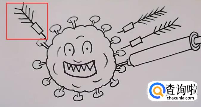 在病毒头的右边画两根箭,左边画一根箭,代表我们要快速消灭他们。