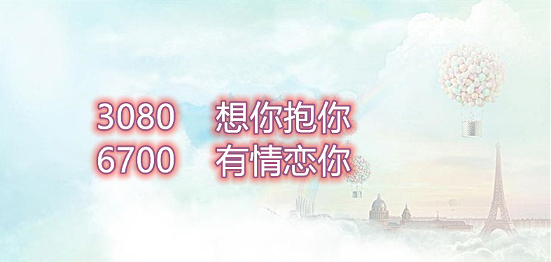 1660意思是:要拥有你;2070意思是:爱你亲你;3080意思是:想你抱你;6700意思是:有情恋你。这些是人们利用数字的谐音而编出来的和爱情有关的文字。
