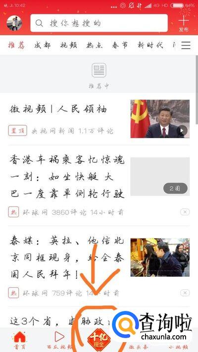 打开今日头条软件(最新版本),点击下图的位置