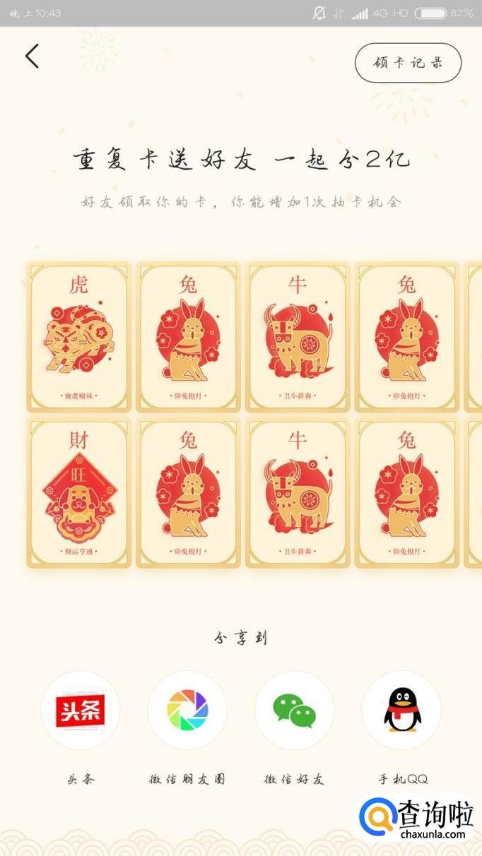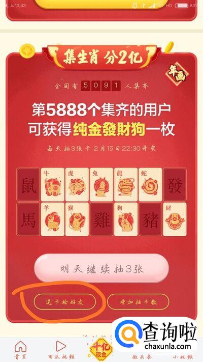 点击参加下图的按键就可以进行抽取生肖卡啦,每天可以抽3次
