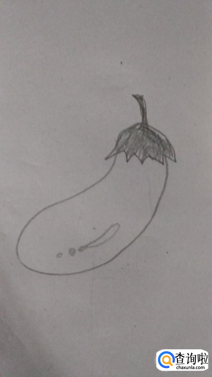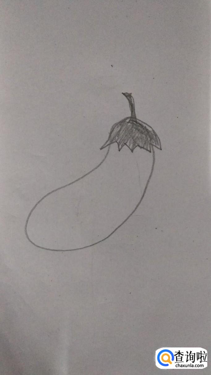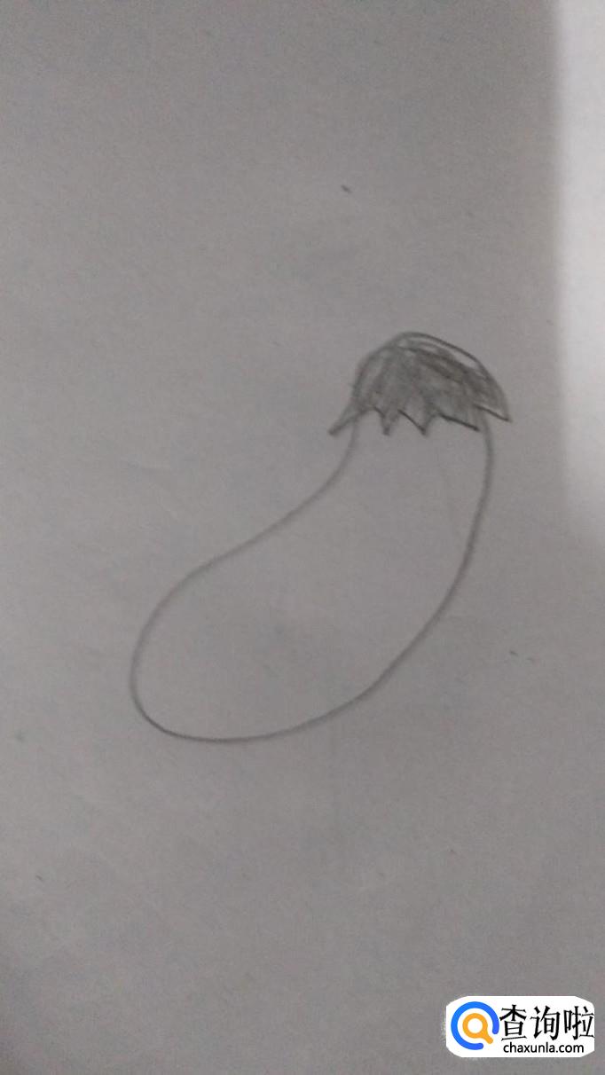然后在顶部画一个齿状半圆,涂黑,作为茄子的蒂。