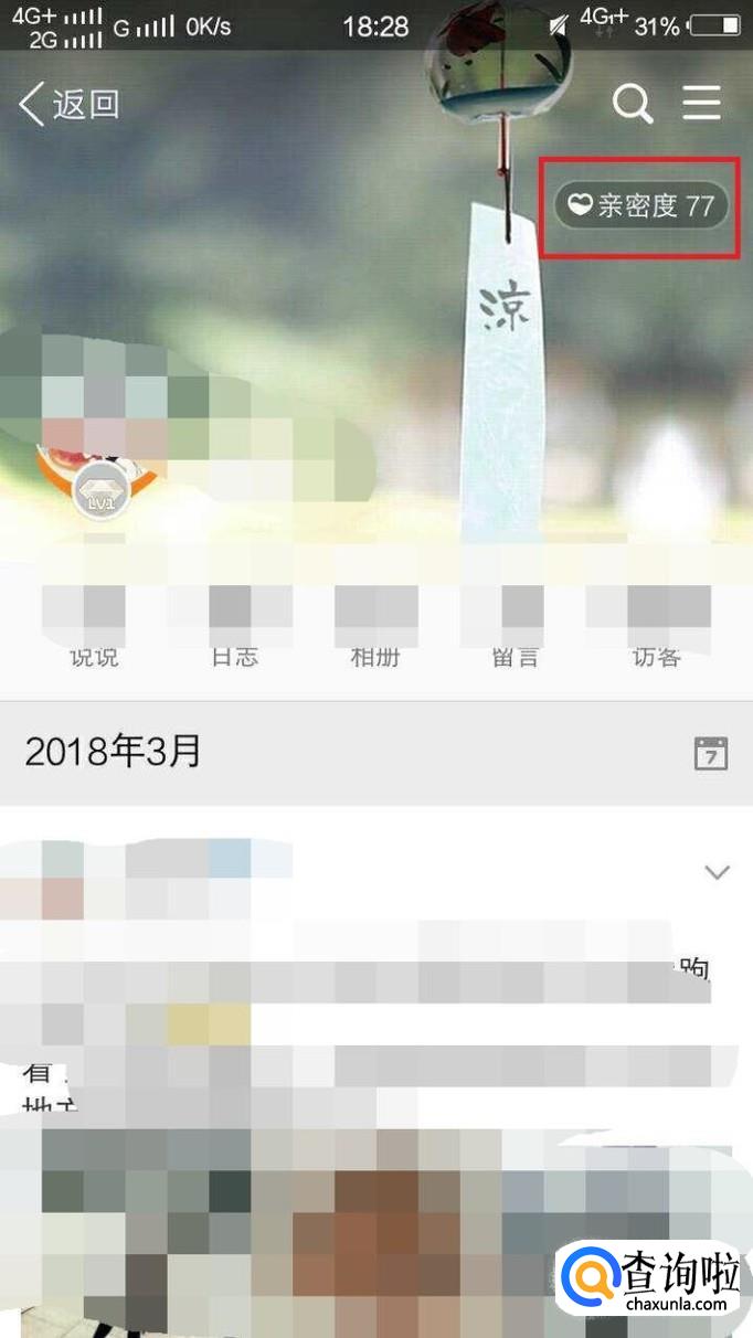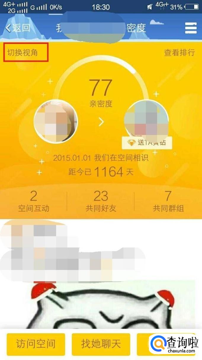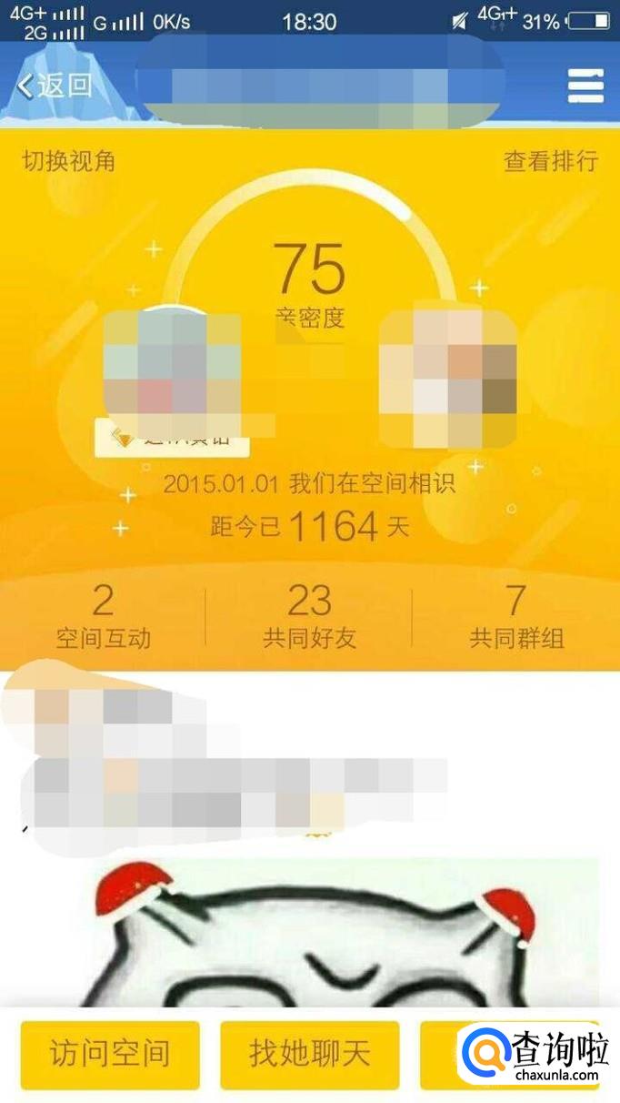 接着还可以点击那个亲密度进入,就可以看到你们的空间互动、共同好友和共同群组以及你们在空间相识多少天。