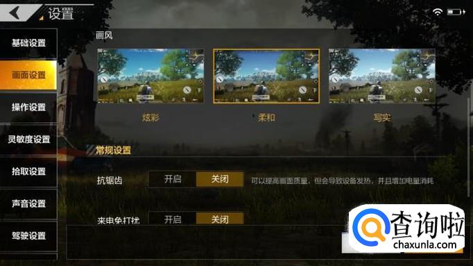 再往下拉,就可以选择游戏的画风,并且可以进行常规的画面设置。画风依据个人的视觉喜好选择即可。
