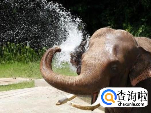 大象有个长鼻子,聪明的它,知道利用自己的优势来给身体降温,它用鼻子吸足水,然后喷向自己的背部,用这种方法来给自己降温。
