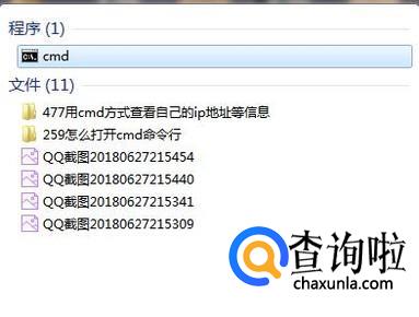 首先在我们电脑开始菜单栏中输入cmd并点击回车键,如下图所示。
