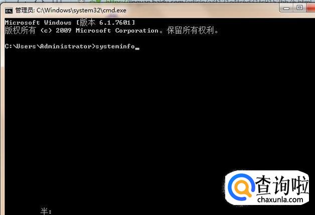 然后输入命令systeminfo并点击回车键,如下图所示。