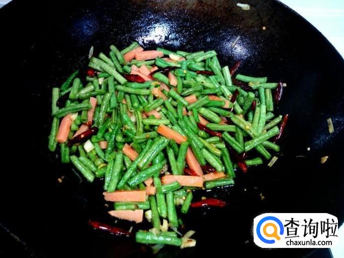 炒至豇豆断生,放入味精,关火出勺。