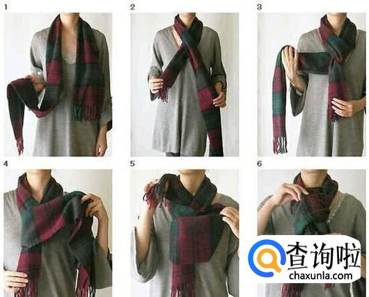 首先将围巾挂在脖子上交叉,要一边长一边短哦,长的在上面,然后将长的一端从短的下面绕上来,接着将长的从脖子与短的围巾的缝隙中塞进去,拉出来之后,再从长围巾绕的圈中塞进去,就可以啦。(小编无法表述得那么清晰,不过下图是分解步骤,大家一看就懂了)