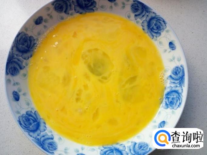 鸡蛋打入盘中,搅拌成鸡蛋液。