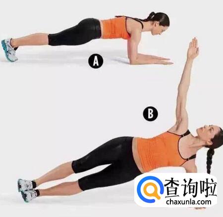 主要稳定腹部核心、腹外斜肌等多项肌群,难度虽然比较大,但是效果很强!侧卧后,手撑在肩膀下方,两腿伸直呈一直斜线预备;上半身往右旋转,停留 10 秒;上半身往左旋转,停留 10 秒,左右轮替,做 1 分钟。可以把靠近地面的那只腿弯曲,会比较容易达成!