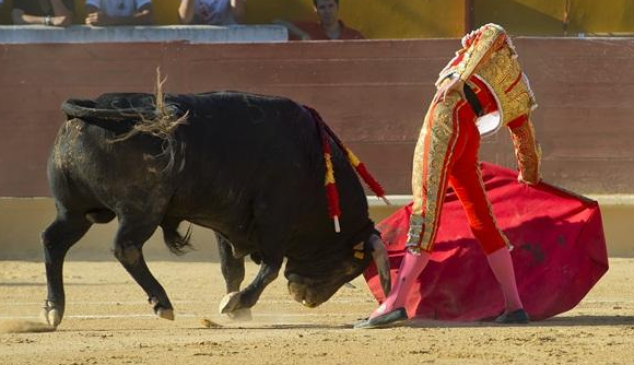 公牛是不是看到红色会发怒?有人考证说,因为牛发怒的时候眼虹膜充血,所以看到的一切都是红的,所以公牛对于红色特别敏感。