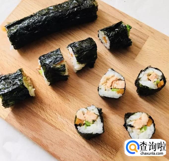 一道美味可口的三文鱼寿司卷就做好了,希望大家能够喜欢。你学会了吗?赶快动手试一试吧。