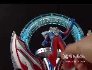 首先我们将奥特曼在变身前需要用到的欧布光环打开,打开之后会看到一股淡蓝色的光芒,而且还会发出一些声音。