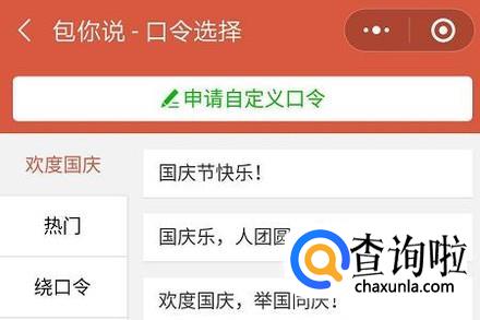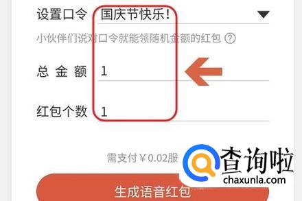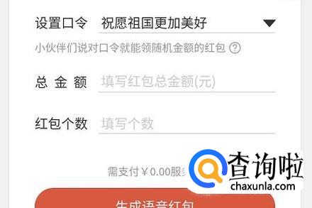 在该界面的最上方设置口令,系统也会有很多备选口令,如图一;然后输入红包总金额以及红包个数,接着点击下方的“生成语音红包”;