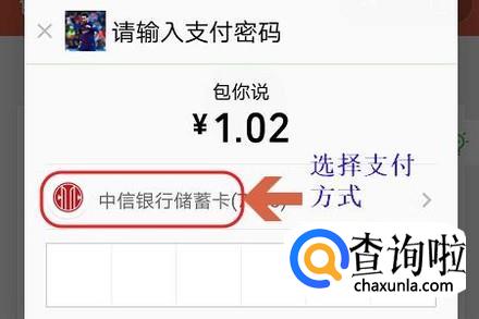 然后系统会要求我们进行相应金额的支付,支付完成以后,只要好友输入正确的口令,即可抢到我们发的这个红包了,不过发口令红包需要支付一定的手续费哦;