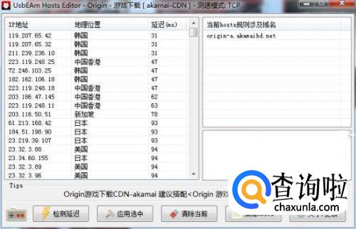 打开后,在左下角有一个工具箱,选择打开,最后选择origin/游戏下载[akamai-CDN] 点击检测延迟,找到延迟低的ip节点选中。这样就好了。