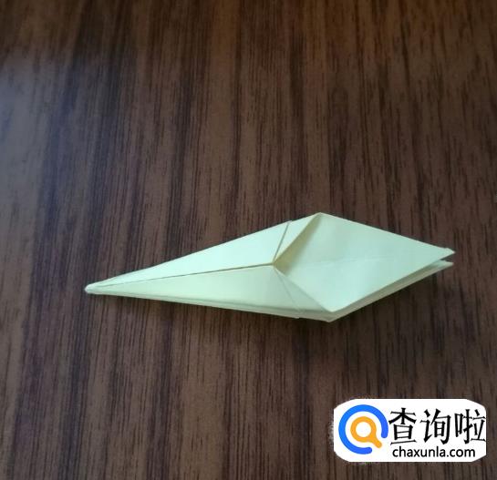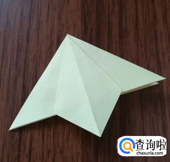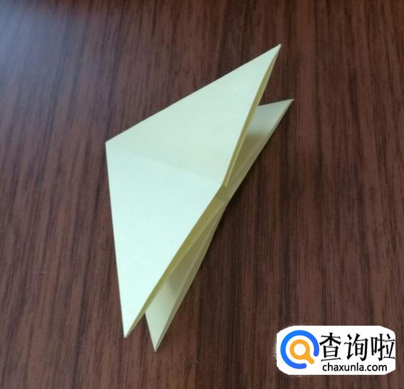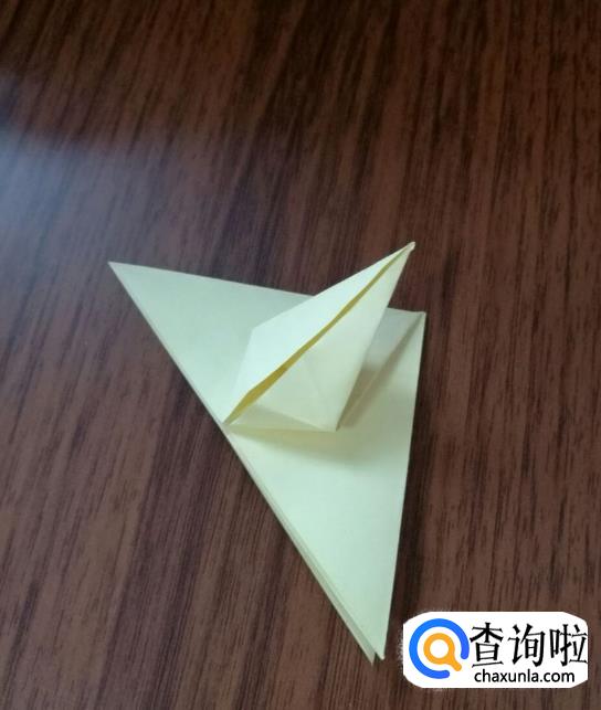 将上方两个尖角沿中线对折。