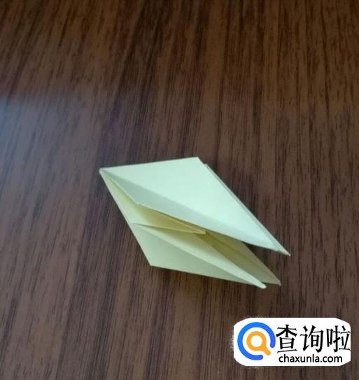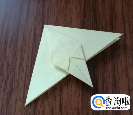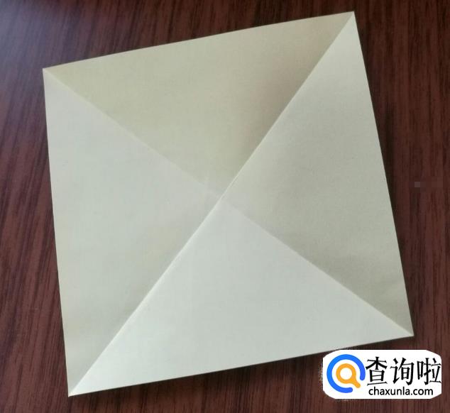 其余三个边用上述相同的折法,折叠成下图样式。
