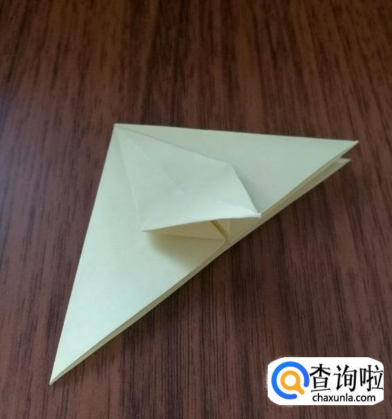 打开这个尖角沿着刚才的折痕向上翻并压平。