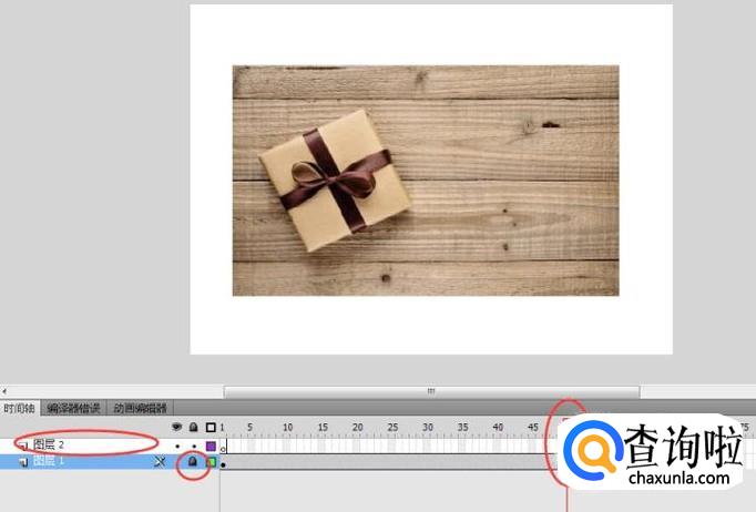 在图层1中的第50帧位置插入关键帧,然后锁定图层1,插入图层2,如下图所示: