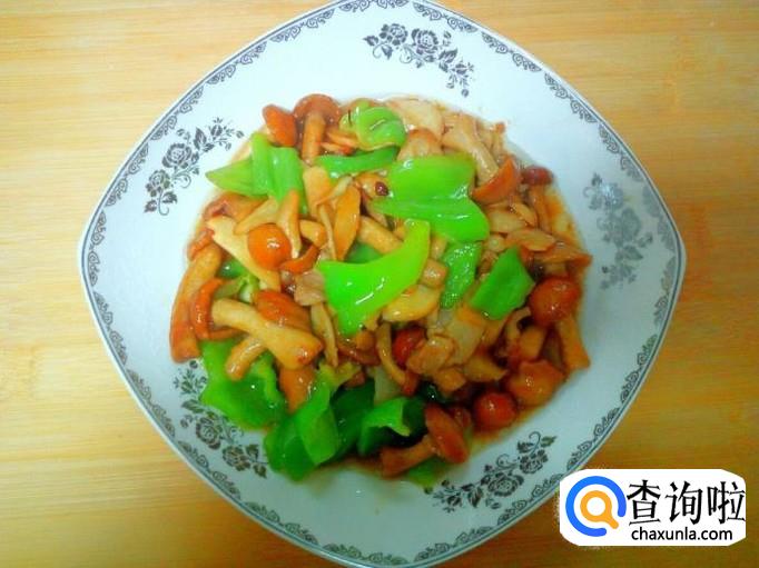 滑子蘑 150克,杏鲍菇 1个,猪肉 100克,青椒 1个。