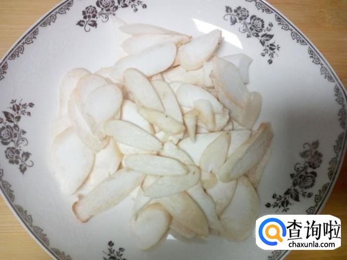 杏鲍菇用水清洗干净,控干水分,切成片。