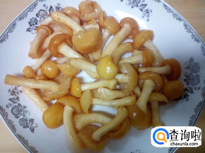 滑子蘑用水焯一下,水开后入锅10秒钟捞出,用冷水过凉,沥干水分。