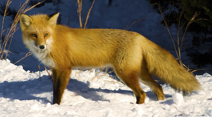 狐狸,哺乳纲,食肉目犬科动物。一般所说的狐狸,又叫红狐、赤狐和草狐。它们灵活的耳朵能对声音进行准确定位、嗅觉灵敏,修长的腿能够快速奔跑,最高时速可达50km/h左右,所以主要以鱼、蚌、虾、蟹、鼠类、鸟类、昆虫类小型动物为食,有时也采食一些植物。实际上狐狸是民间对这一类动物的通称,种类繁多,分北极狐、赤狐、银黑狐、沙狐等。性格机敏胆小,常在古代神话中以"狐狸精"出现,虽在远古也曾作为图腾,但从不出现于正式祭祀中,皆因其"形象不雅",多与狡诈鬼祟相关联。多年来,狐妖狐仙,在各种小说及趣闻中形成一种独有的妖精文化。