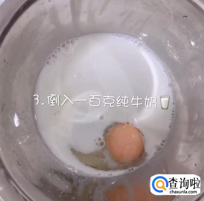 接着倒入100克的纯牛奶,如下图所示。