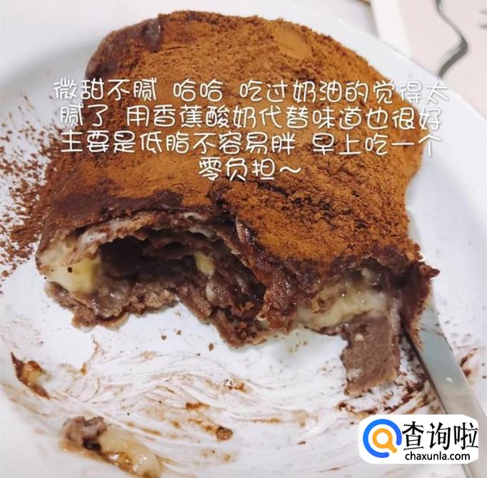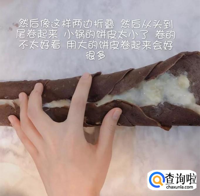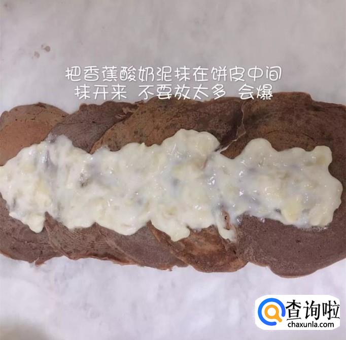 然后把香蕉酸奶涂抹在饼皮的中间,如下图所示。