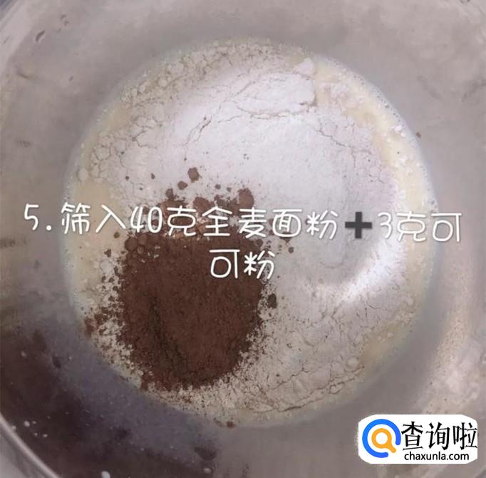 接着筛入40克的全麦面粉和3克的可可粉,如下图所示。