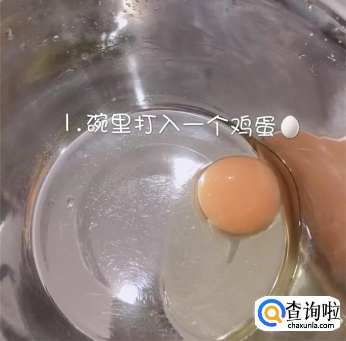 首先在一个碗中打入一个鸡蛋,如下图所示。