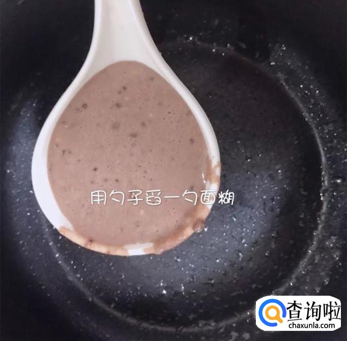 然后用勺子舀出一勺的面糊,如下图所示。
