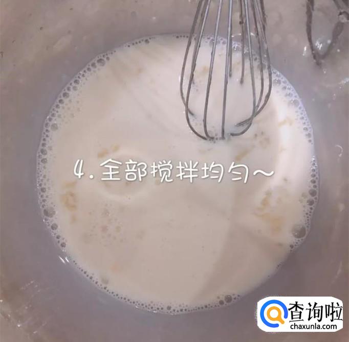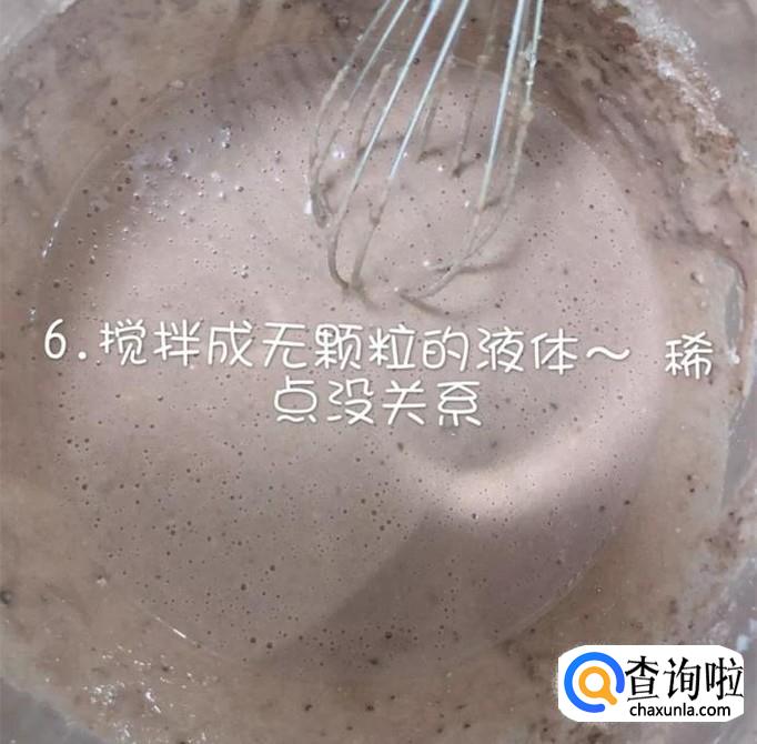 然后用打蛋器继续搅拌成无颗粒的液体,如下图所示。