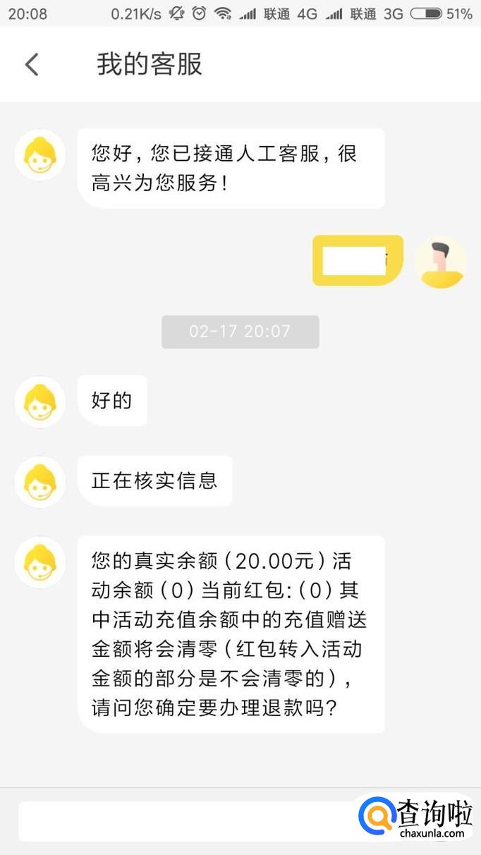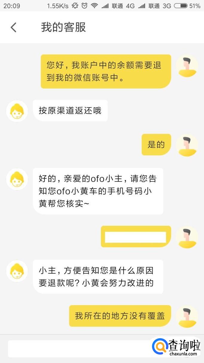 客服会要求我们提供账户手机号码,同时咨询一些问题,包括为何需要退款等原因,然后客服将会核实我们账户中的金额。